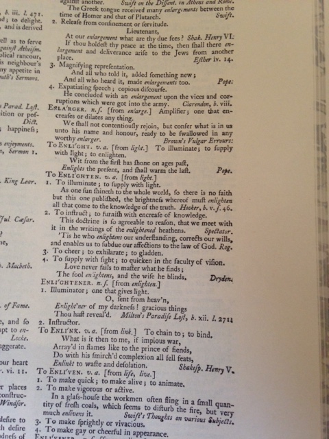 I looked up “to enlighten”Johnson’s libraryOutside view